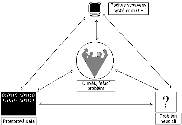 Obr. 1. Vazby mezi prvky, které jsou nezbytné při řešení problému pomocí systémů GIS